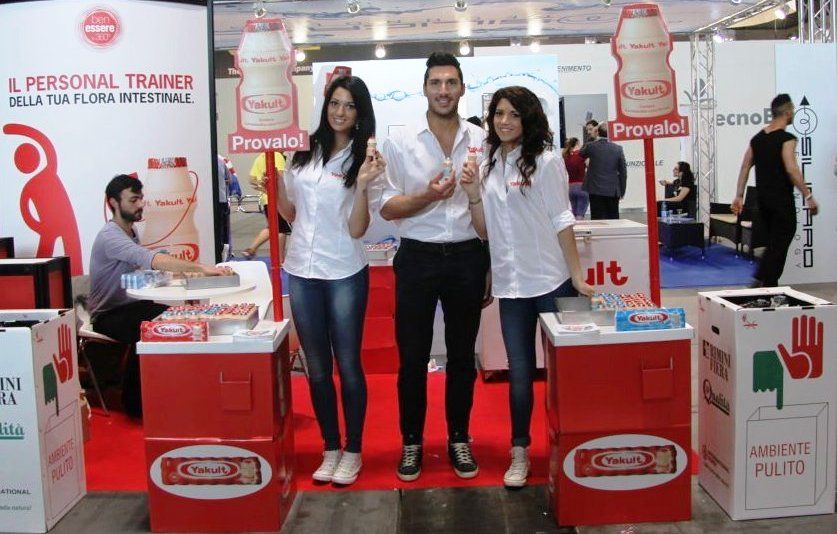 Yakult is a probiotic dairy product whose philosophy is to contribute to the well-being of people around the world through science, research and experience in the field of microbiology. Thanks to its healthy ingredients the Rimini Wellness. has been the perfect stage to presents Yakult products and brand message. We were there with our friendly hostesses and hosts always helpful and available to give information in different languages to the international clients present in Rimini.